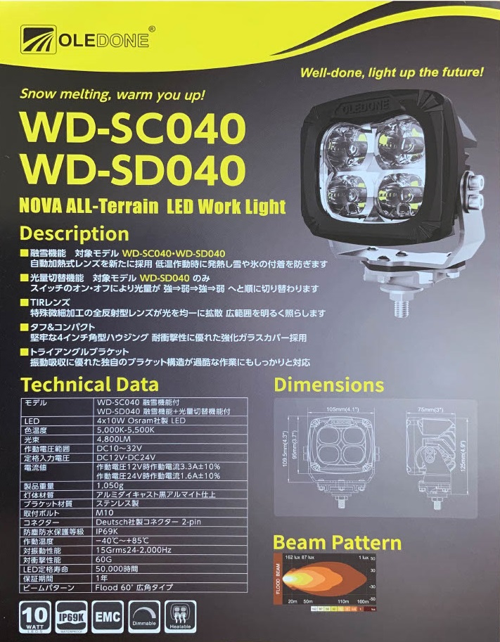 WD-SC040 融雪機能付き LED 作業ライト 作業灯 除雪車 除雪ローダーに最適 OLEDONE LED LIGHT FLOOD